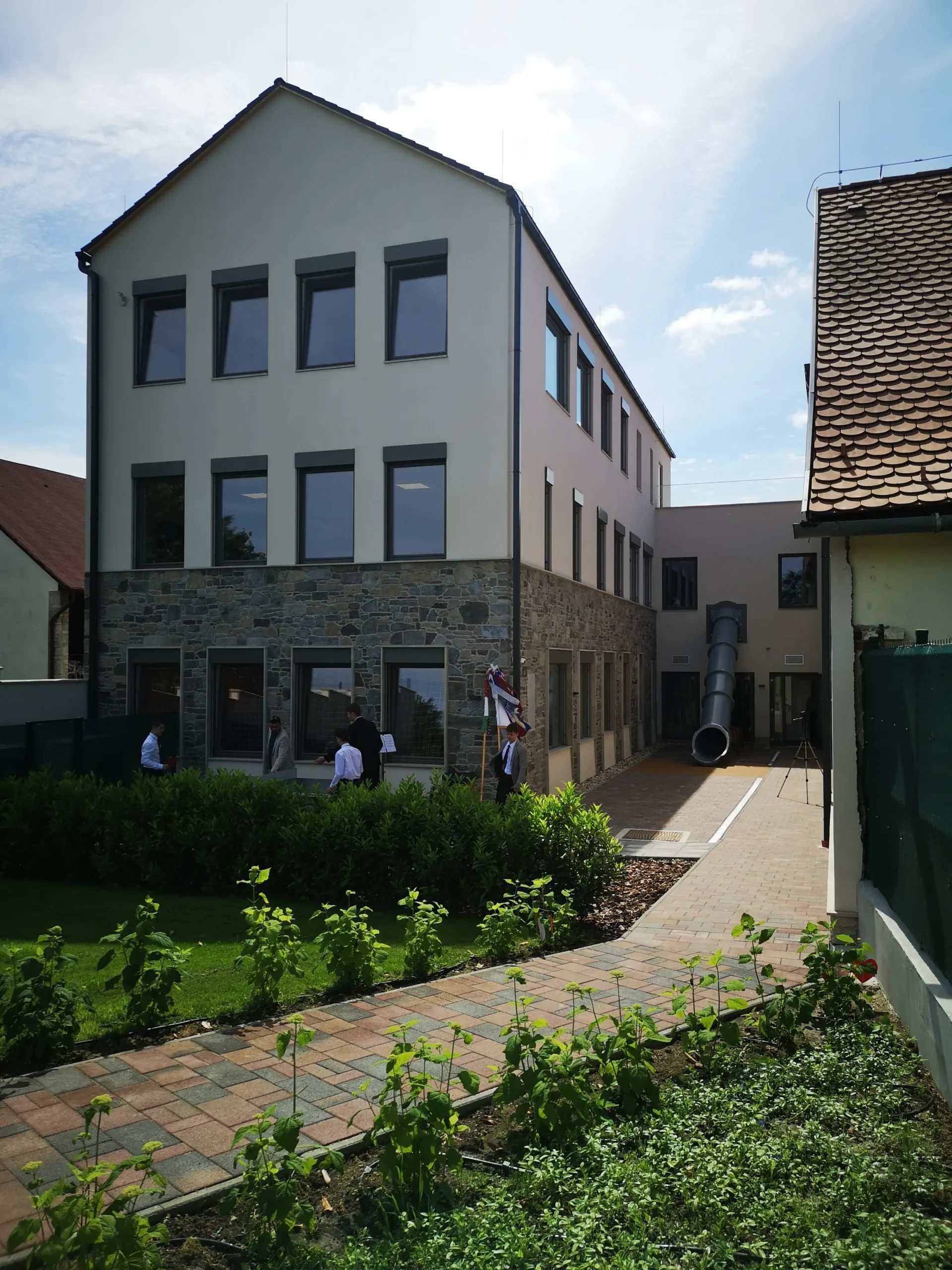 Generáltervezés, építészeti és belsőépítészeti tervezés. Építési engedélyezési tervdokumentáció és kiviteli tervek készítése. A móri Katolikus Általános Iskola bővítése keretein belül öt tanterem és egy tornaterem valósult meg a működő iskola szomszédságában. Megvalósult alapterület cca.: 850m2. Jelenleg is az iskola további bővítési koncepcióján dolgozunk.