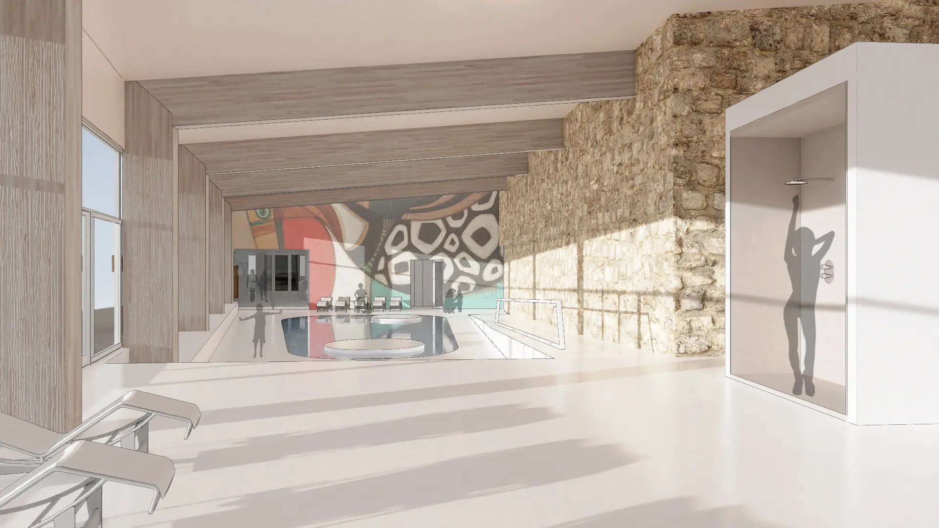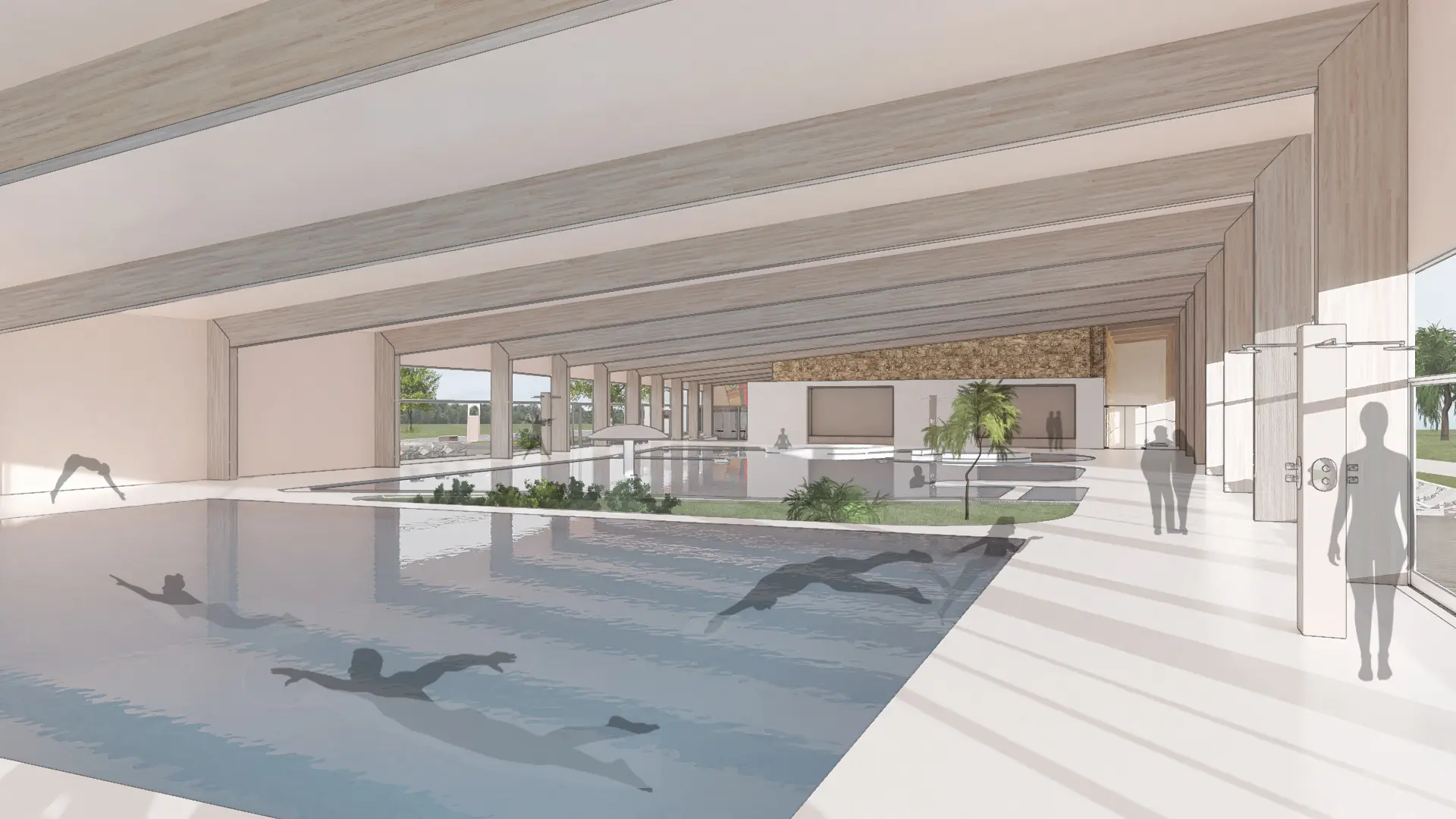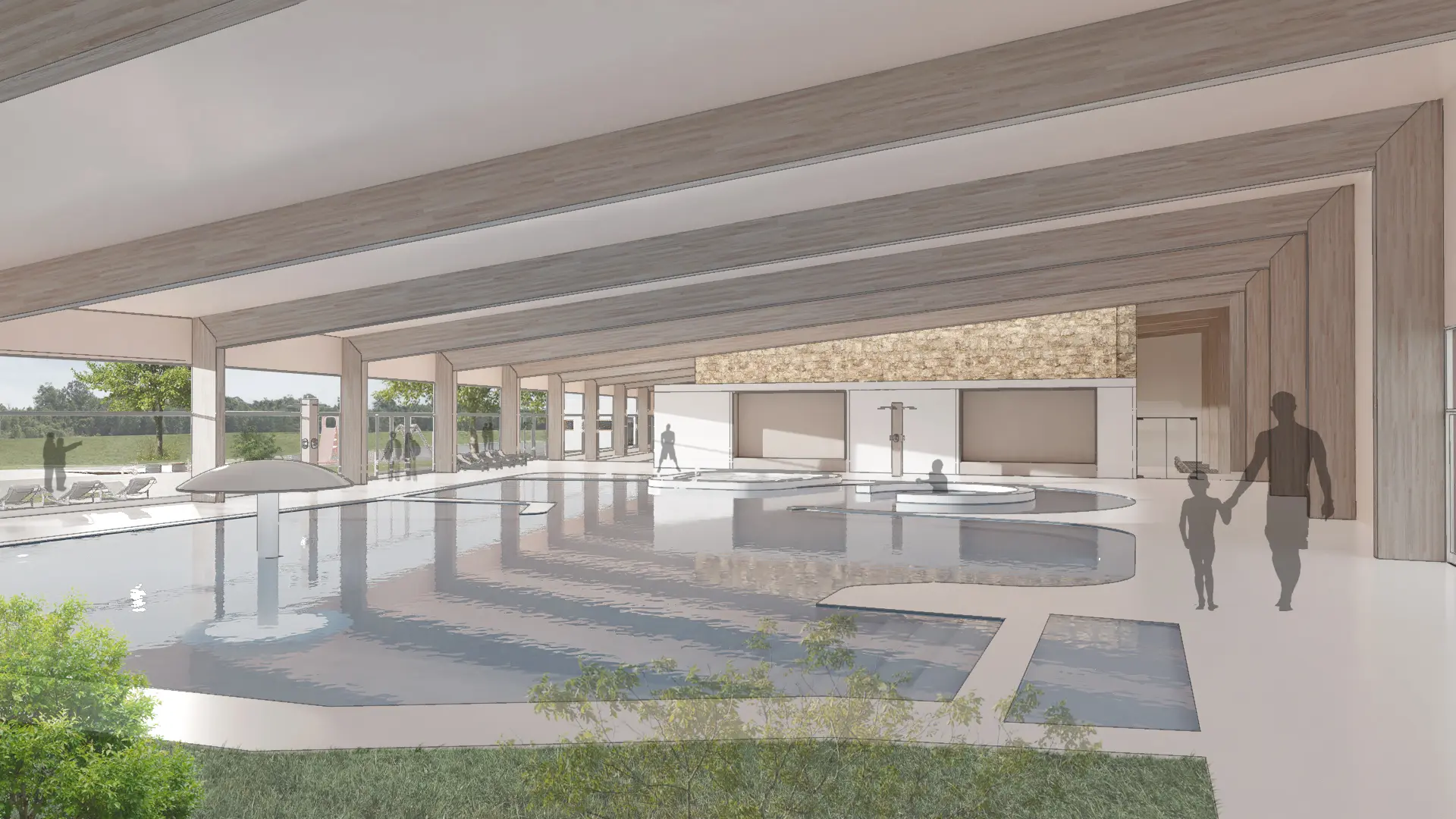 A megrendelő a jelenlegi törökfürdő funkció megtartása mellett egy modern élményfürdő kiépítését szeretné, a kültéri medencék megszüntetésével . Alapterülete: 13646 m2.